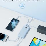 Equipped with 5 output ports and dual input options, this power bank is compatible with a wide range of cell phones and smart devices, making it a versatile charging solution for all your devices. The slim design and included cords make it perfect for travel, ensuring you can stay connected wherever you are.