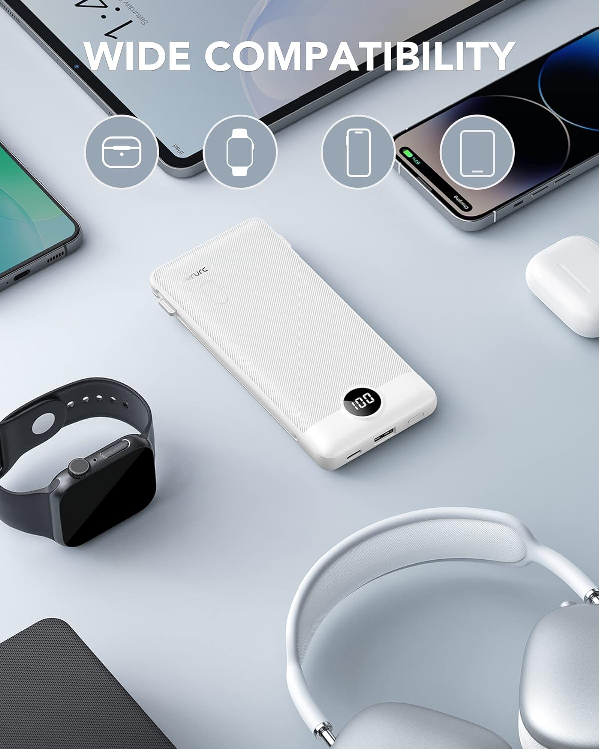 The white finish adds a touch of style to this practical gadget, making it a must-have accessory for tech-savvy individuals. Whether you’re traveling, commuting, or simply out and about, the VRURC Portable Charger is your reliable companion for keeping your devices charged and ready to go.